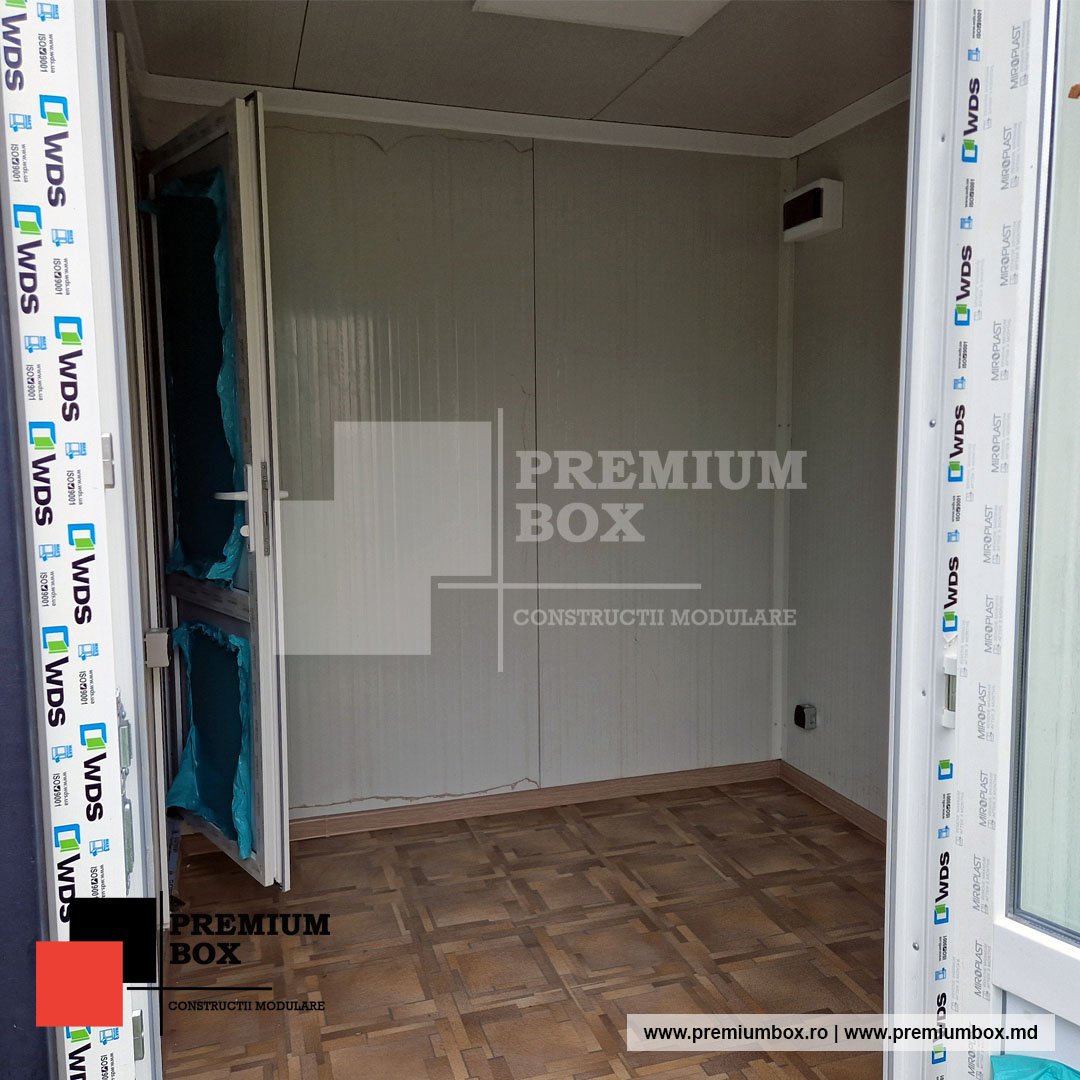 Walls: 60 mm PUR sandwich panels; interior finish RAL9002, exterior finish RAL9002.