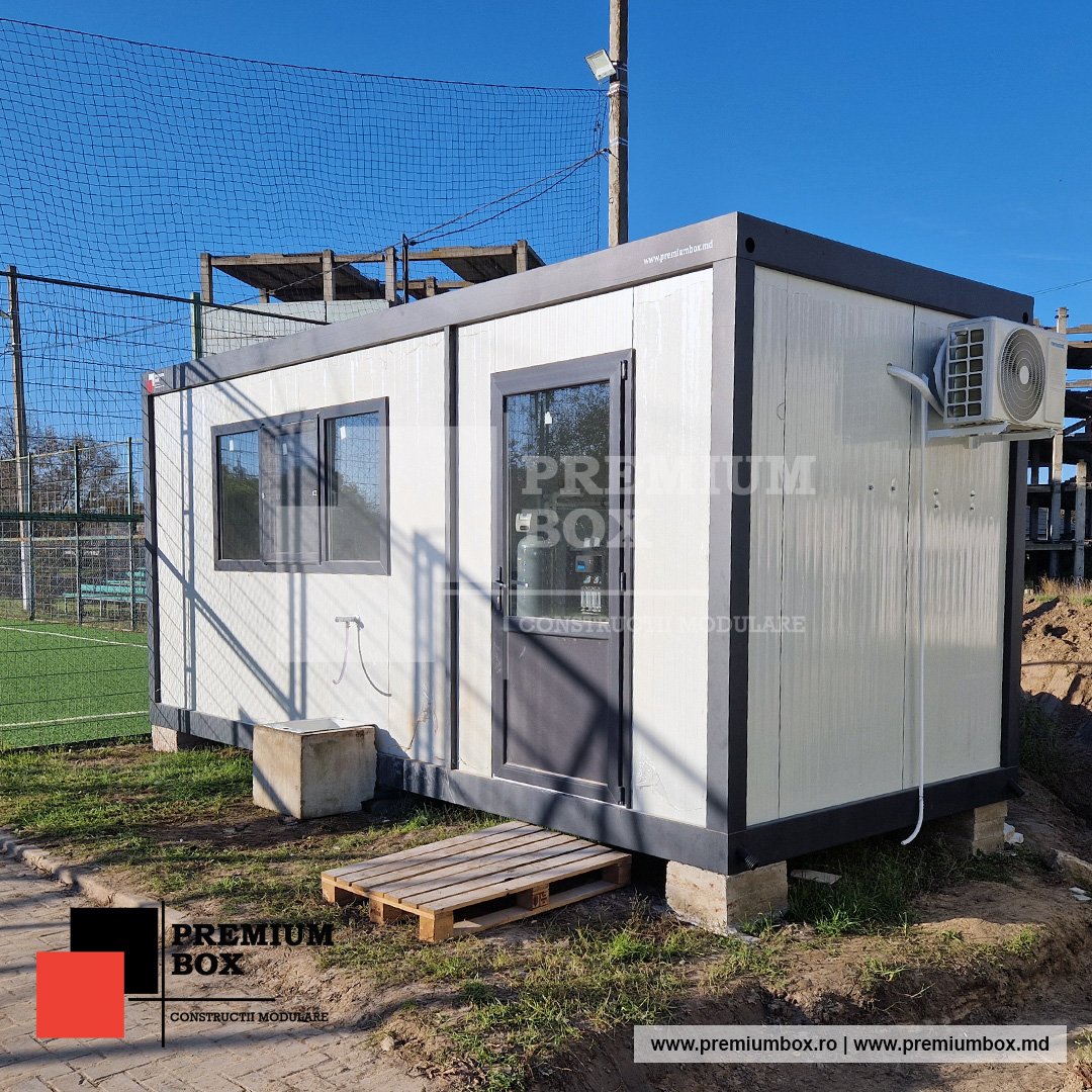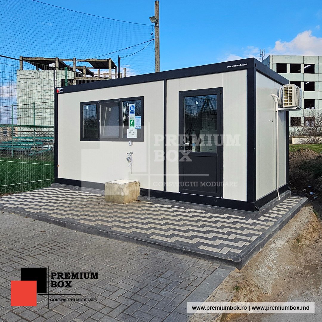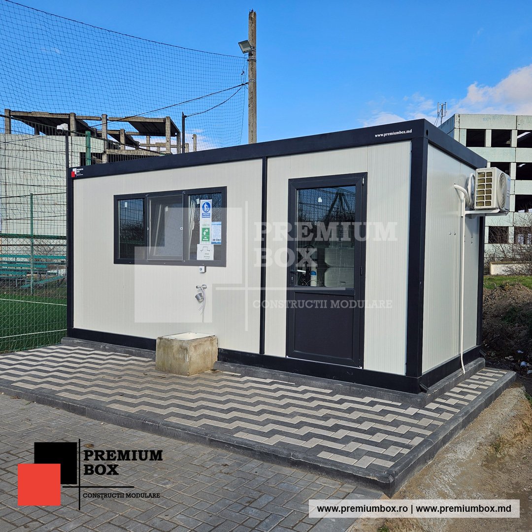 Walls: 60 mm PUR sandwich panels; interior finish RAL9002, exterior finish RAL9002.